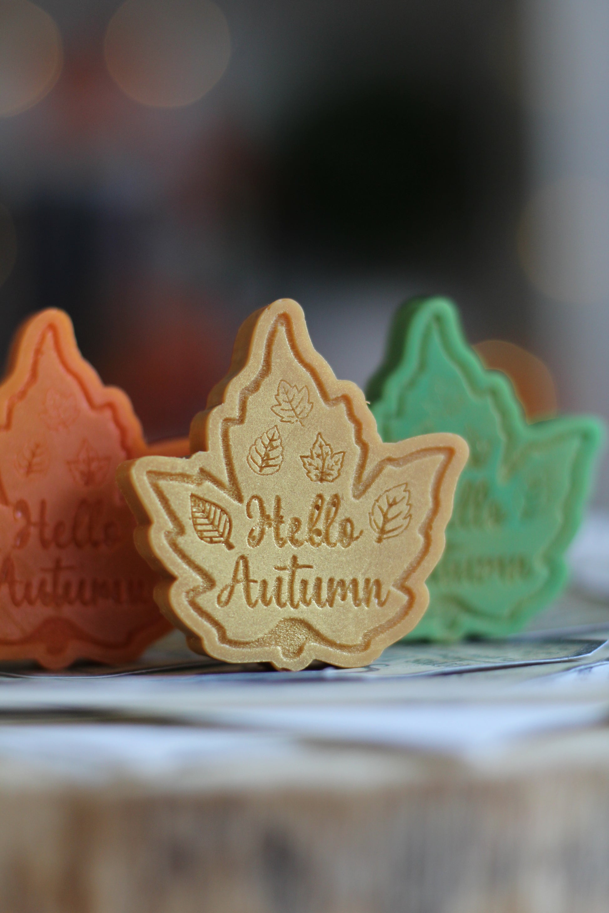 Autumn Leaves and Pumpkins Please vosak za topljenje za topljenje dolazi u oblicima jesenskog lišća u tri različite boje. Svaki vosak izrađen je i obojan ručno.