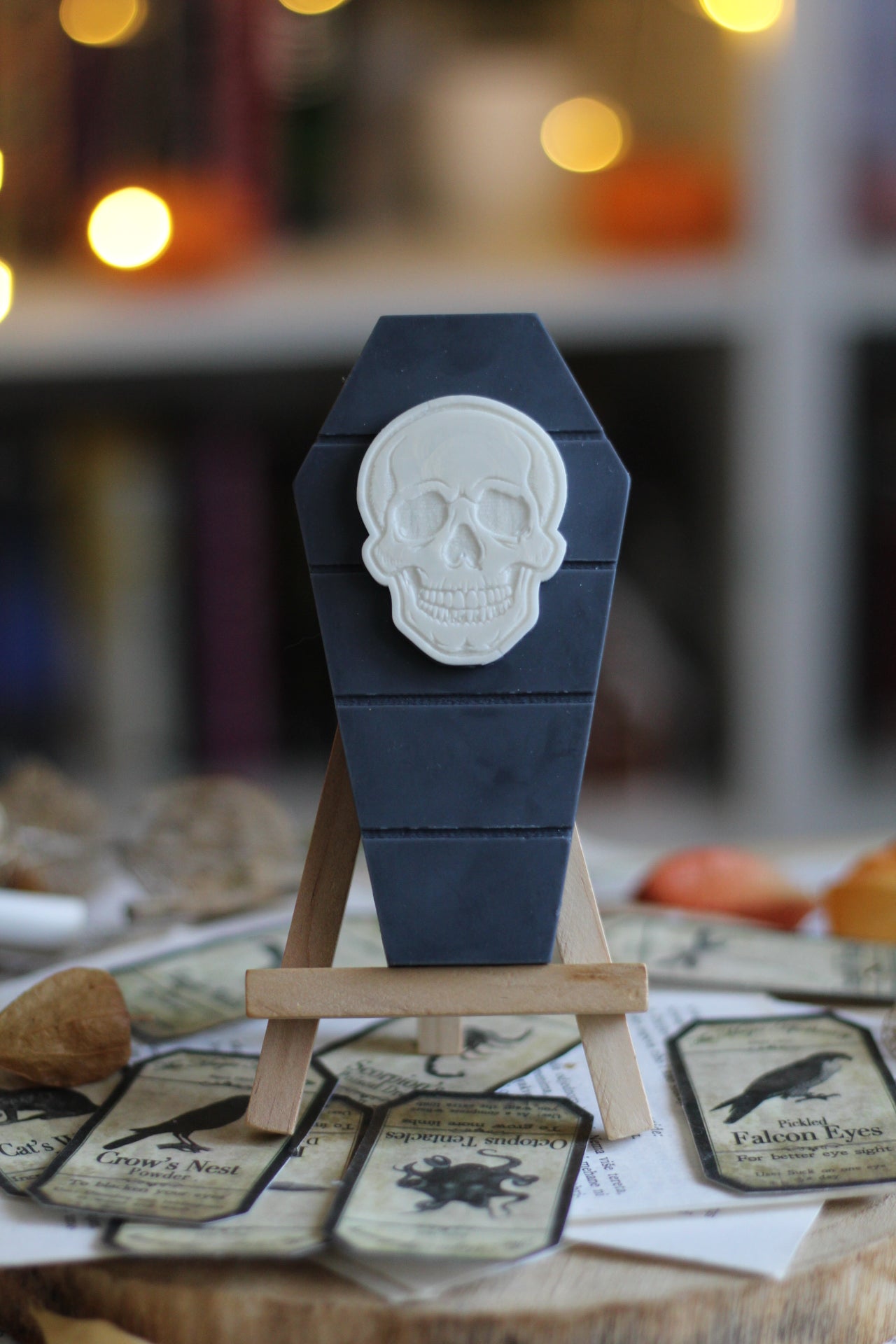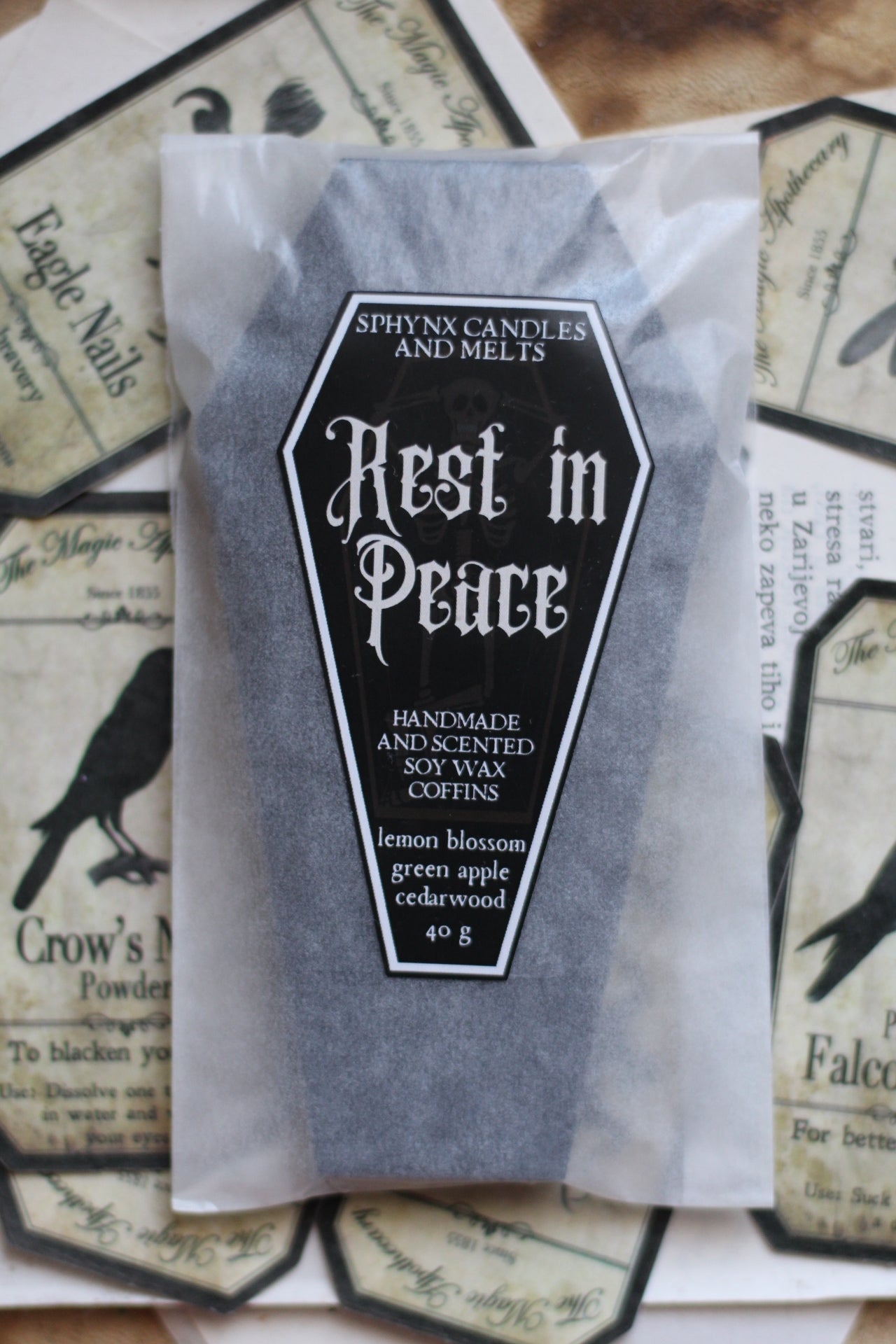 Pločice za topljenje u obliku lijesa s mrtvačkom glavom fonose sljedeće mirisne note: