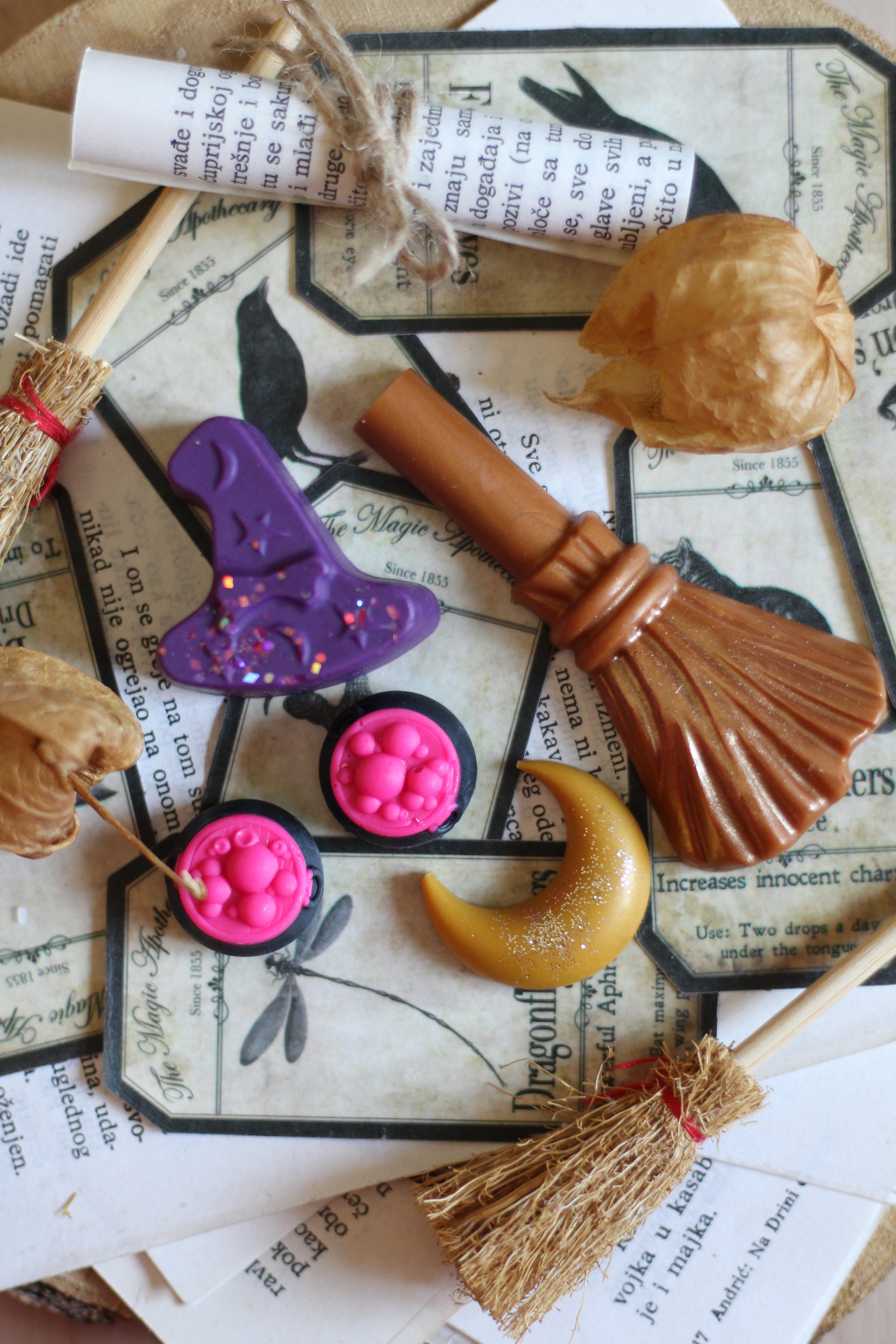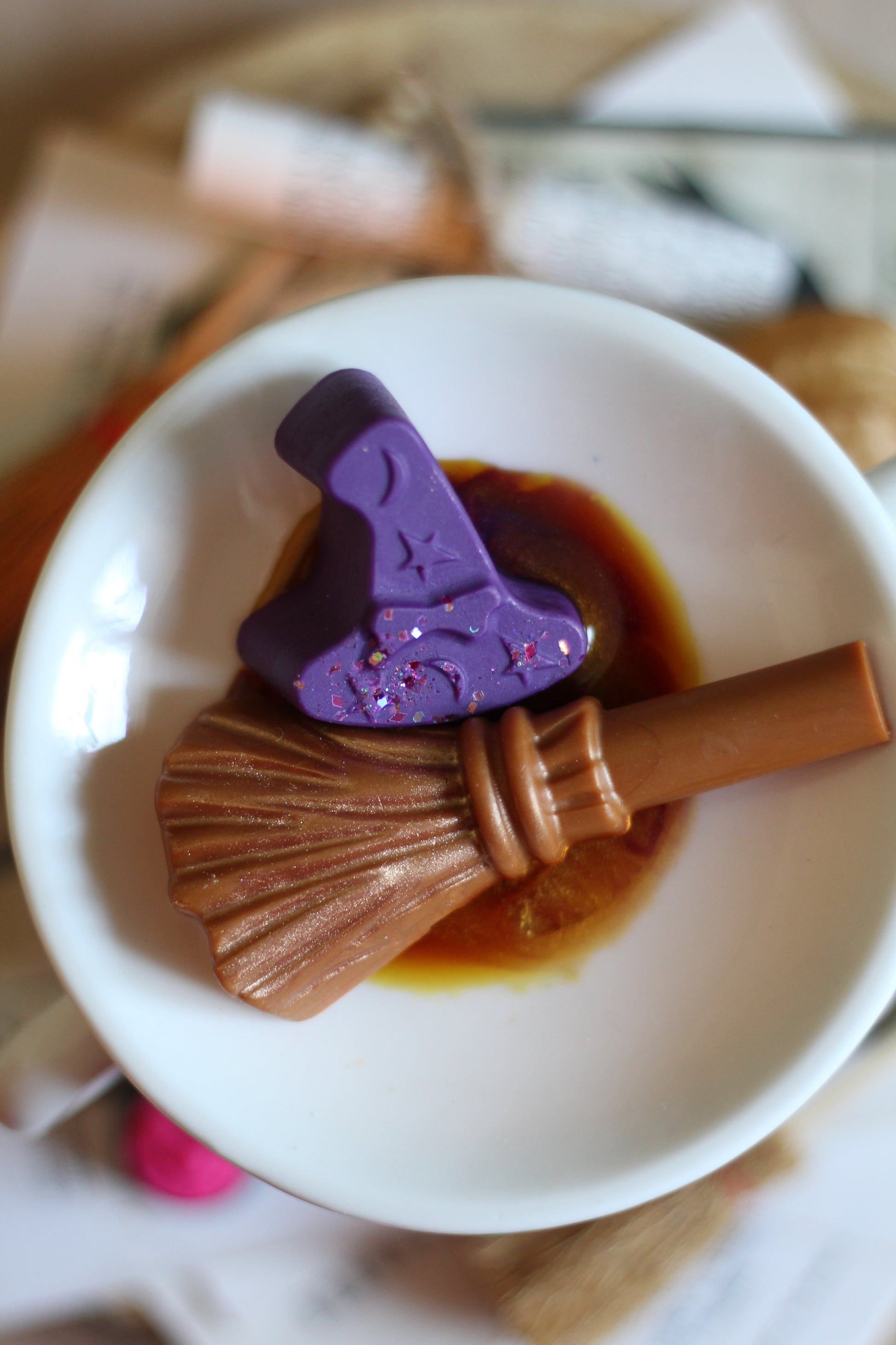 I'm Melting voskovi za topljenje dolaze u obliku vještičjeg šešira, metle, mjeseca i malih vještičjih kotlića.